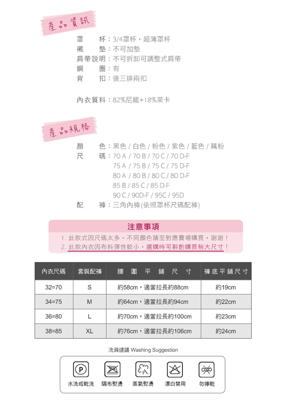尺寸:70A/70B/70C/70D/75A/75B/75C/75D/80A/80B/80C/80D/85B/85C/85D/90C/90D/95C/95D