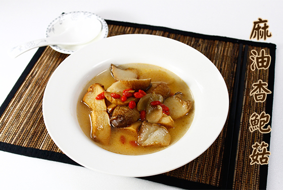 麻油杏鮑菇-杏鮑菇、枸杞、黨參、料理酒、特級麻油、鹽