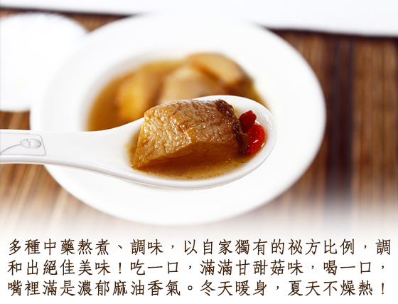 ●獨家中藥配方佐以麻油調味,湯頭香氣濃郁溫醇又順口!