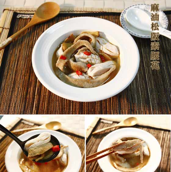 麻油松阪素腰花-松阪豬肉、素腰花、薑片、料理酒、特級麻油